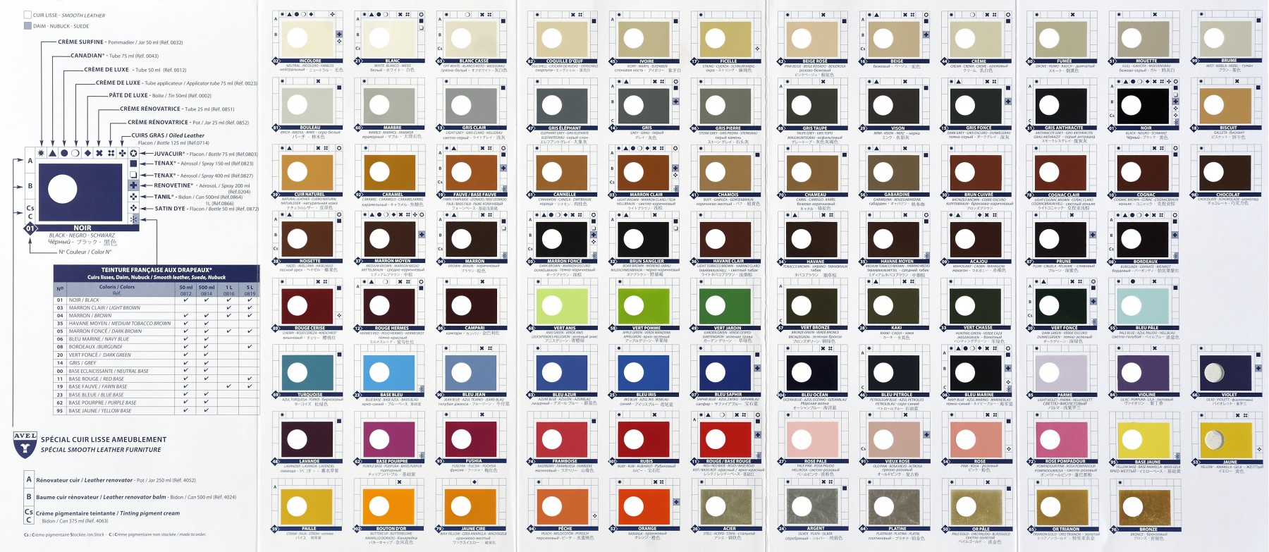 Vous ne trouvez pas la nuance de cirage que vous recherchez ? Découvrez notre catalogue complet offrant plus de 80 coloris.
