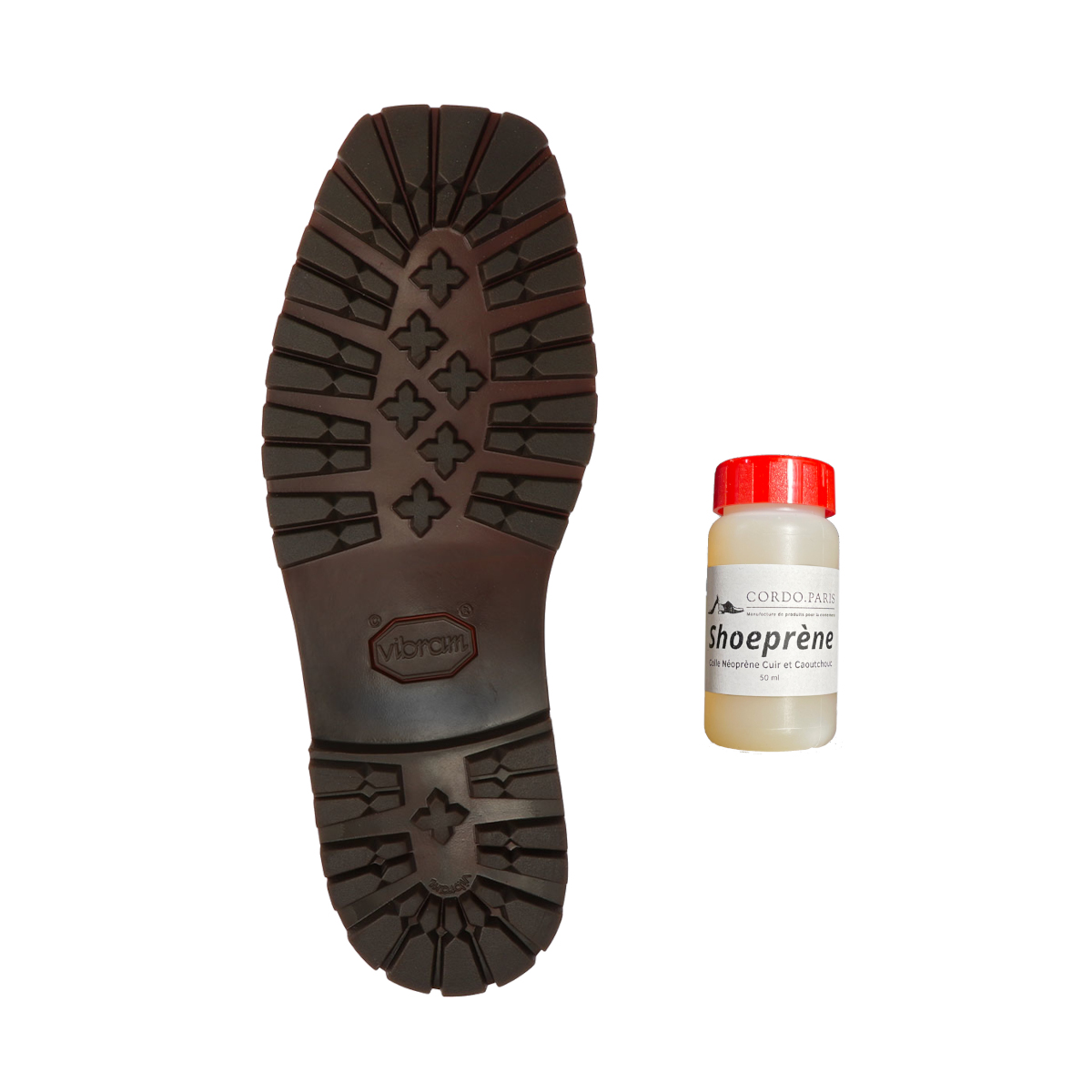 * Le conditionnement de 50ml de la colle Shoeprène vous permettra de coller au moins une paire de semelles complètes (semelle, patin et talon si applicable).